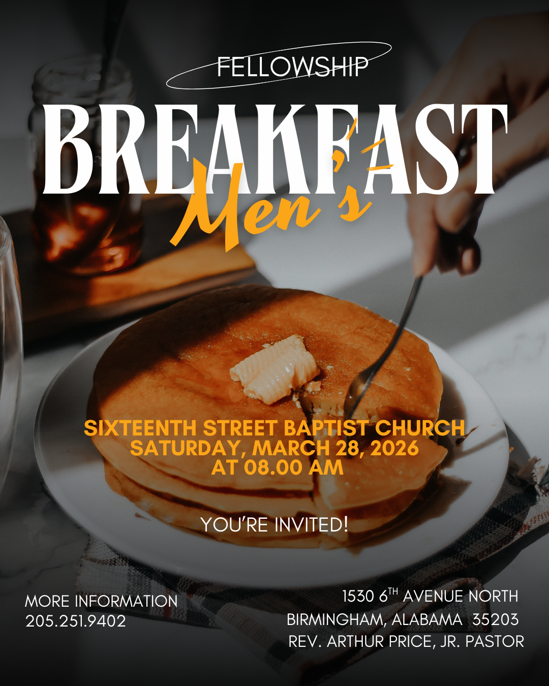 Men’s Fellowship Breakfast + Add to Google Calendar + iCal / Outlook export 00 days 00 hours 00 minutes 00 seconds Date Mar 28 2026 Time 8:00 am - 10:00 am Category Community Event Share this event